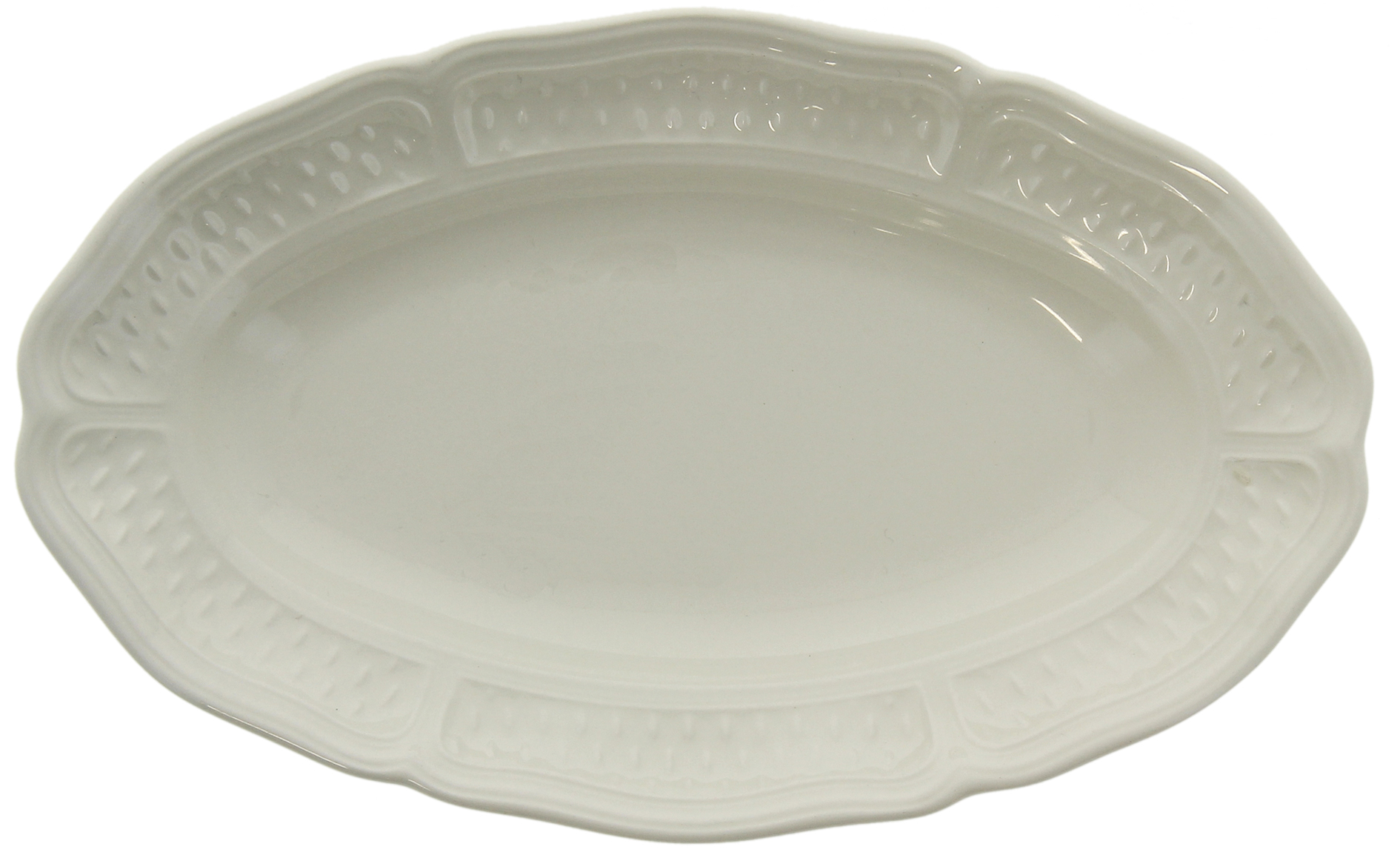 Die dekorative Beilagenplatte aus der hochwertigen Geschirr-Serie Pont aux Choux Blanc von Gien besticht durch die schön gearbeitete Keramik in feinem Weiß. Mit dem leicht erhabenen Muster ziert diese edle Platte jede Tafel und ist ein besonderes und feines Highlight für jeden gedeckten Tisch. Auf der edlen Platte lassen sich verschiedene Gemüse und Fleisch wie auch Salate wunderbar anrichten.