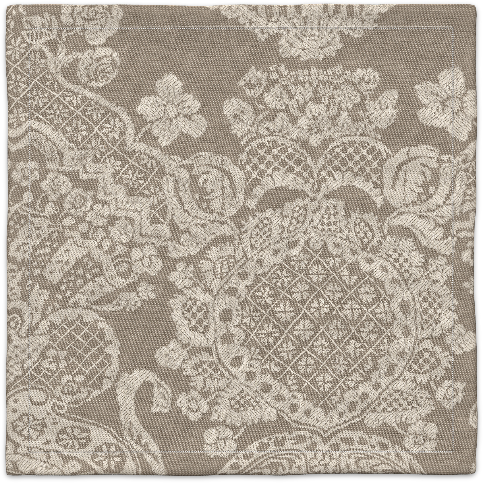 Diese herrschaftliche Serviette im Dessin Imperial aus Leinen von Leitner Leinen wirkt durch ihr ausdruckstarkes Muster. Opulent und verspielt, verbreitet die hochwertige Serviette mit ihren großen floralen Motiven, zurückgenommenen Farben und mit edlem Glanz aristokratisches Flair und schafft eine besondere Atmosphäre.