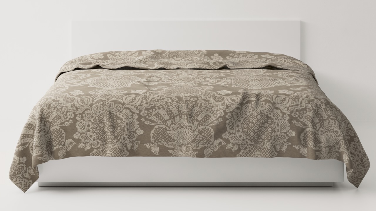 Der edle Bettüberwurf von Leitner Leinen wird in diesem edlen Dessin Imperial in der gewählten Farbe und Größe nach Maß gefertigt. Zusätzlich zu den gezeigten Maßen sind auf Anfrage fast alle beliebigen Maße möglich.