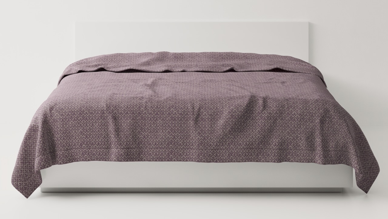 Der Stoff des hochwertigen Bettüberwurfs ist durch die Seitennähte mit dem Vlies verbunden. Auf Anfrage kann der Bettüberwurf auch mit Punktabsteppungen gearbeitet werden, wodurch Ober- und Unterstoff an mehreren Stellen des Plaids mit dem Vlies fixiert werden. Der Besatz an den Rändern des Bettüberwurfs wird aus dem Stoff der Vorderseite genäht und ist 7 cm breit. Auf Wunsch können Vorder- und Rückseite der Tagesdecke in verschiedenen Dessins und Farben gefertigt werden.