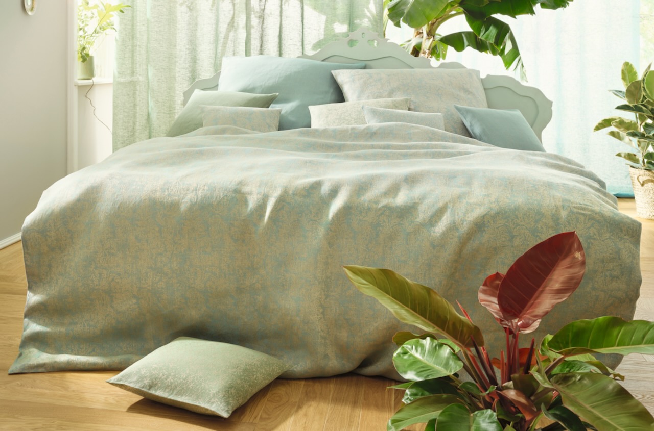 Dieser exklusive Bettüberwurf von Leitner Leinen im Dessin Friuli aus reinem Leinen wirkt durch sein filigran gewebtes Muster aus feinen Ranken, Blättern, Blüten und Arabesken edel und einladend. Durch seinen feinen Glanz und das leicht verspielte Muster verbreitet der hochwertige Bettüberwurf mit seinen edlen Farben ein ganz besonderes Flair und schafft eine schöne Atmosphäre.