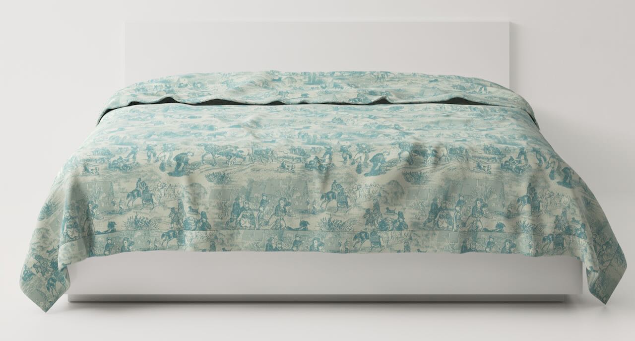 Diese schöne Tagesdecke im Dessin Toile-des-Alpes aus feiner Baumwolle und edlem Leinen von Leitner Leinen entführt in die romantische Winterszenerie der Bergwelt im 18. Jahrhundert. Eine fein gewebte Tagesdecke mit dezenten und harmonisch aufeinander abgestimmten Farben, die mit ihren winterlichen Motiven eine natürliche Leichtigkeit vermittelt.