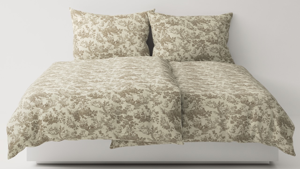 Diese besondere Bettwäsche im Dessin Toile-de-Jouy aus feiner Baumwolle von Leitner Leinen entführt in die romantisch ländliche Szenerie des 18. Jahrhunderts. Eine feine edle Bettwäsche mit dezenten und harmonisch aufeinander abgestimmten Farben, die mit ihren verspielten Motiven eine natürliche Leichtigkeit vermittelt.