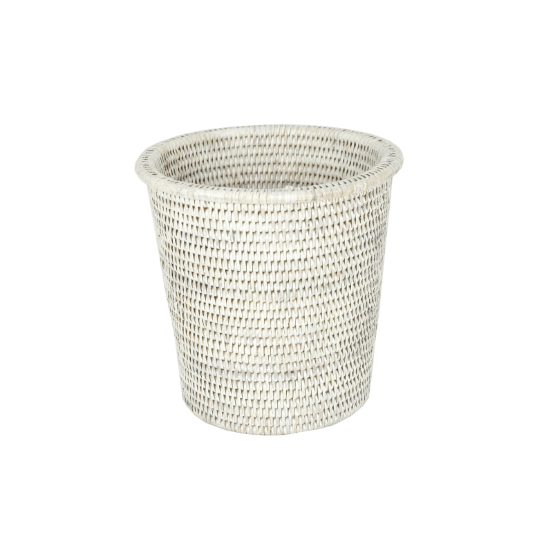 Dieser kleine runde Papierkorb aus hochwertigem Rattan ist robust und dekorativ zugleich. In aufwendiger Handarbeit hochwertig verarbeitet ist der dekorative Papierkorb zeitlos und schön, gleichzeitig funktional und strapazierbar. Durch seine wasserabweisende Lasur lässt sich der hochwertige Papierkorb gut reinigen und ist praktisch überall einsetzbar. Er eignet sich für den Wohnraum genauso wie für Küche oder Bad und verleiht dem Zuhause eine warme persönliche Note. In gedecktem Weiß setzt er die richtigen Akzente.