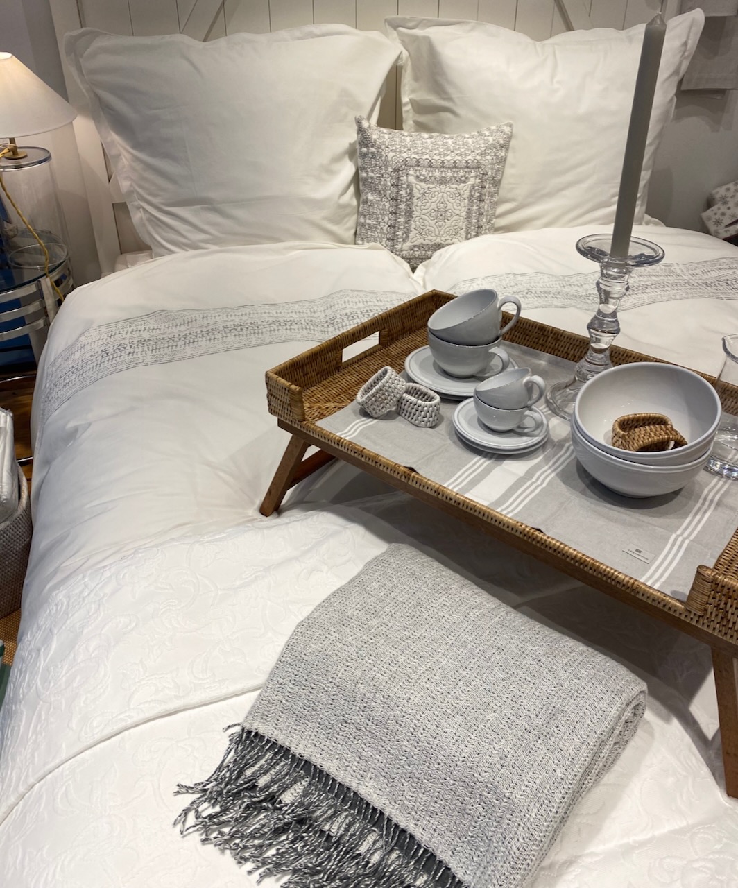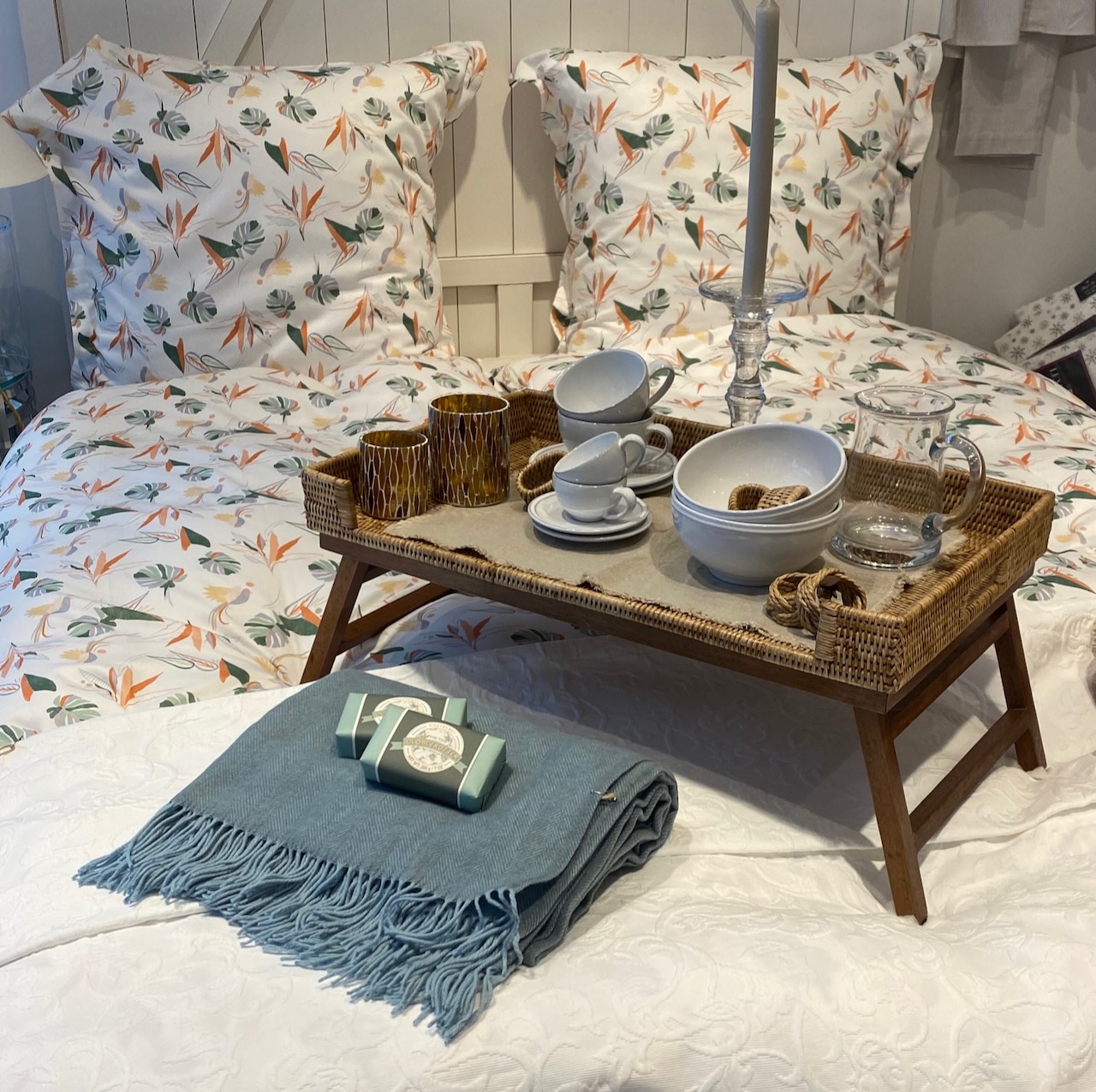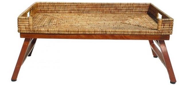 Dieses schöne Bett-Tablett aus hochwertigem Rattan ist perfekt für alle, die ein gemütliches Frühstück im Bett zu genießen wissen, oder eine Ablage neben dem Sessel im Garten benötigen. In aufwendiger Handarbeit hochwertig verarbeitet ist das schöne Bett Tablett aus Korb zeitlos und edel, gleichzeitig funktional und strapazierbar. Durch seine wasserabweisende Lasur lässt sich das praktische Bett Tablett gut reinigen und ist praktisch überall einsetzbar. In gedecktem Weiß oder schönem Braun setzt es die richtigen Akzente. Es ist gut zu verstauen, denn die Beine lassen sich nach innen klappen.