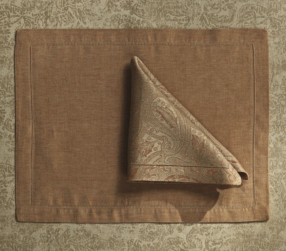 Diese edle Serviette aus Reinleinen von Leitner Leinen im Dessin Ilex besticht durch das ausdrucksstarke Paisleymuster in Kombination mit fein gewebten Ilexblättern. Das filigran gewebte Muster mit seinem feinen Glanz und edlen Farben verleiht der hochwertigen Serviette von Leitner Leinen eine ganz besondere Note.