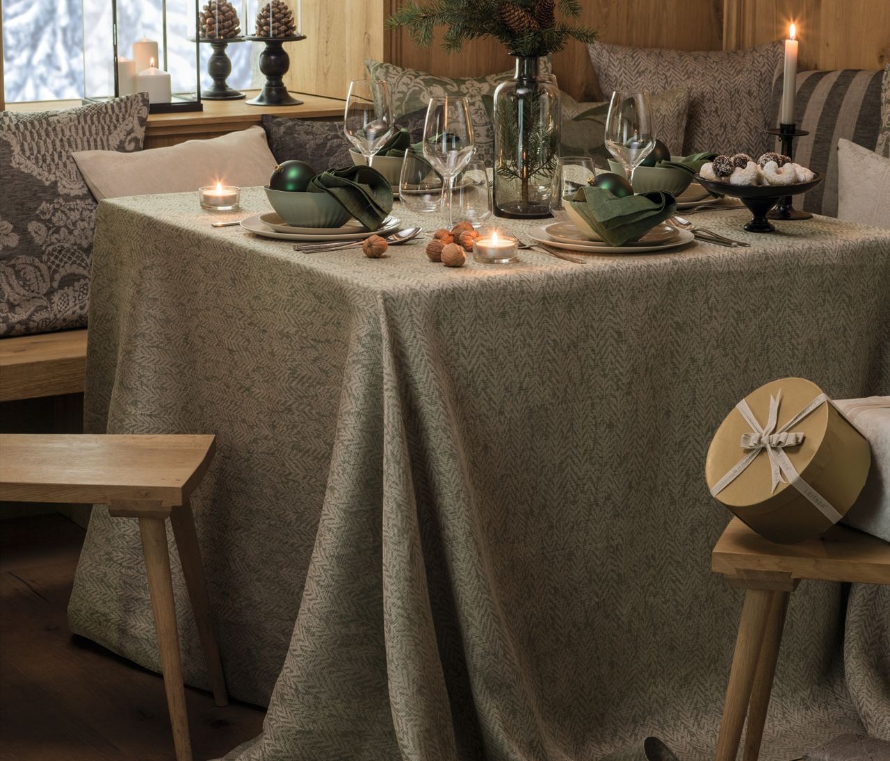 Die dekorative Tischdecke von Leitner Leinen wird in diesem edlen Dessin Farn in der gewählten Farbe und Größe nach Maß gefertigt. Zusätzlich zu den gezeigten Maßen sind auf Anfrage fast alle beliebigen Maße möglich.