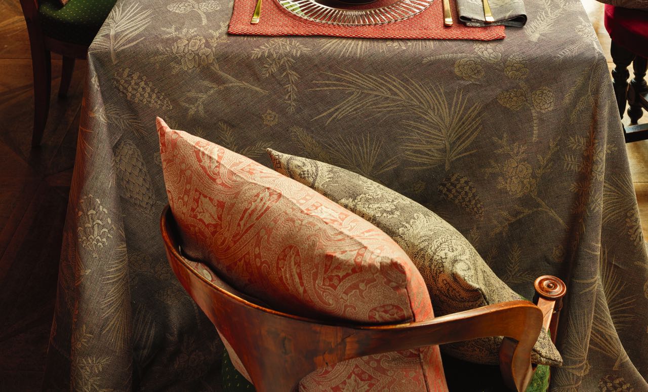 Diese kunstvoll gewebte Tischdecke von Leitner Leinen im Dessin Foresta aus Reinleinen zeigt den Reichtum des Waldes. Fein gewebte Zweige, Zapfen und Äste verschiedener Gehölzarten kommen durch die harmonisch aufeinander abgestimmten Farben besonders schön zur Geltung und verleihen der hochwertigen Tischdecke eine edle Optik in zurückhaltender Eleganz.