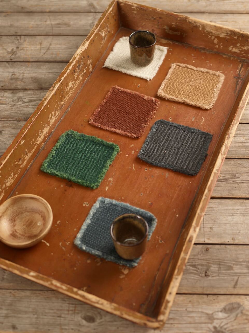 Dieser dekorative Glasuntersetzer von Libeco wird aus einer gewaschenen Leinen-Wollmischung gewebt. Der edel lässige Untersetzer besticht durch seine Fransen an den Aussenseiten und den edlen gedeckten Farben. Der Stoff ist robust und hat gleichzeitig eine weiche Haptik. Die schönen dezenten Farben haben einen leichten Glanz und wirken durch die Gewebestruktur edel-rustikal. Ein Glasuntersetzer in schlichter und edel-lässiger Optik passend für Drinnen und Draußen. Die Mindestbestellmenge beträgt 4 Stück.