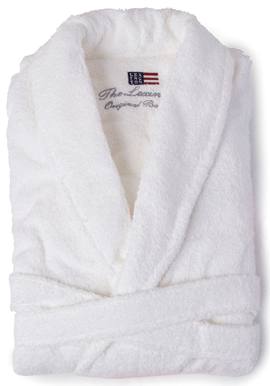 Dieser hochwertige Bademantel von Lexington aus schönem Frottee ist sehr weich und kuschelig und durch den großzügigen Schnitt ungemein bequem. Der dekorative Schalkragen schmiegt sich wunderbar an und verleiht dem edlen Bademantel eine sportlich-lässige Note. Der schöne Bademantel hat zwei aufgesetzte Vordertaschen, die praktisch und dekorativ zugleich sind. Die Größe M entspricht bei Damen 40/42 und bei Herren 48.