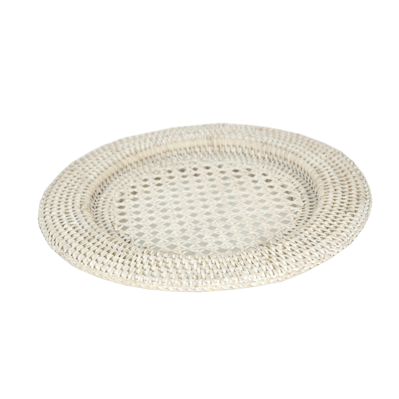 Dieser dekorative Platzteller aus hochwertigem Rattan passt zu jedem Geschirr und verleiht der Tischdekoration eine besondere Note. In aufwendiger Handarbeit hochwertig verarbeitet ist der schöne Platzteller aus Korb zeitlos und schön, gleichzeitig funktional und strapazierbar. Durch seine wasserabweisende Lasur lässt er sich gut reinigen und ist praktisch überall einsetzbar. Der hochwertige Rattanplatzteller eignet sich für den Wohnraum genauso wie für Küche oder Garten und verleiht dem Zuhause eine warme persönliche Note. In gedecktem Weiß setzt er die richtigen Akzente. Die Mindestabnahmemenge beträgt 2 Stück.