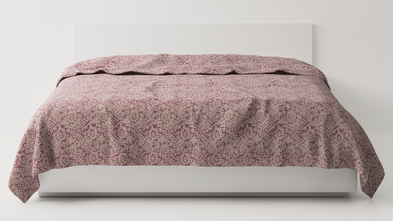 Der edle Bettüberwurf von Leitner Leinen wird in diesem ausdrucksstarken Dessin Versailles in der gewählten Farbe und Größe nach Maß gefertigt. Zusätzlich zu den gezeigten Maßen sind auf Anfrage fast alle beliebigen Maße möglich.