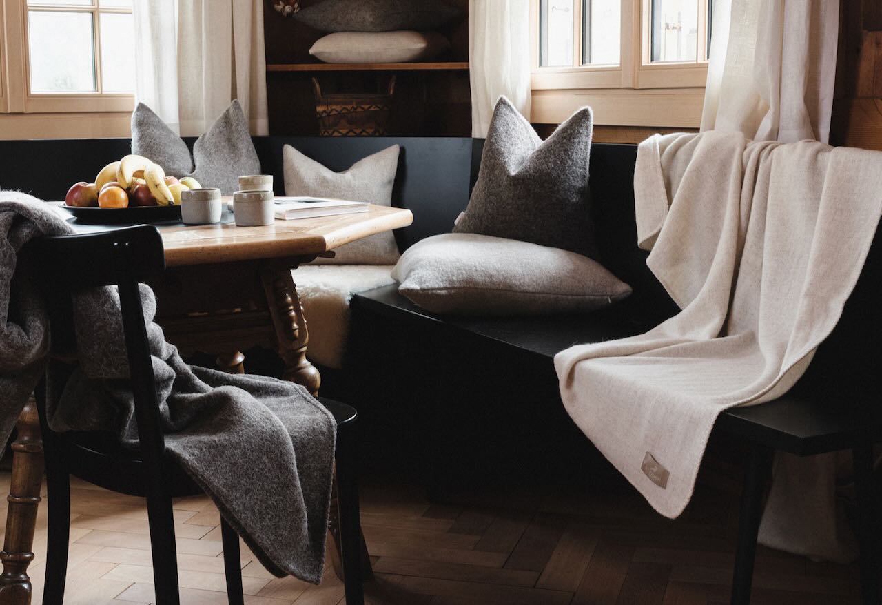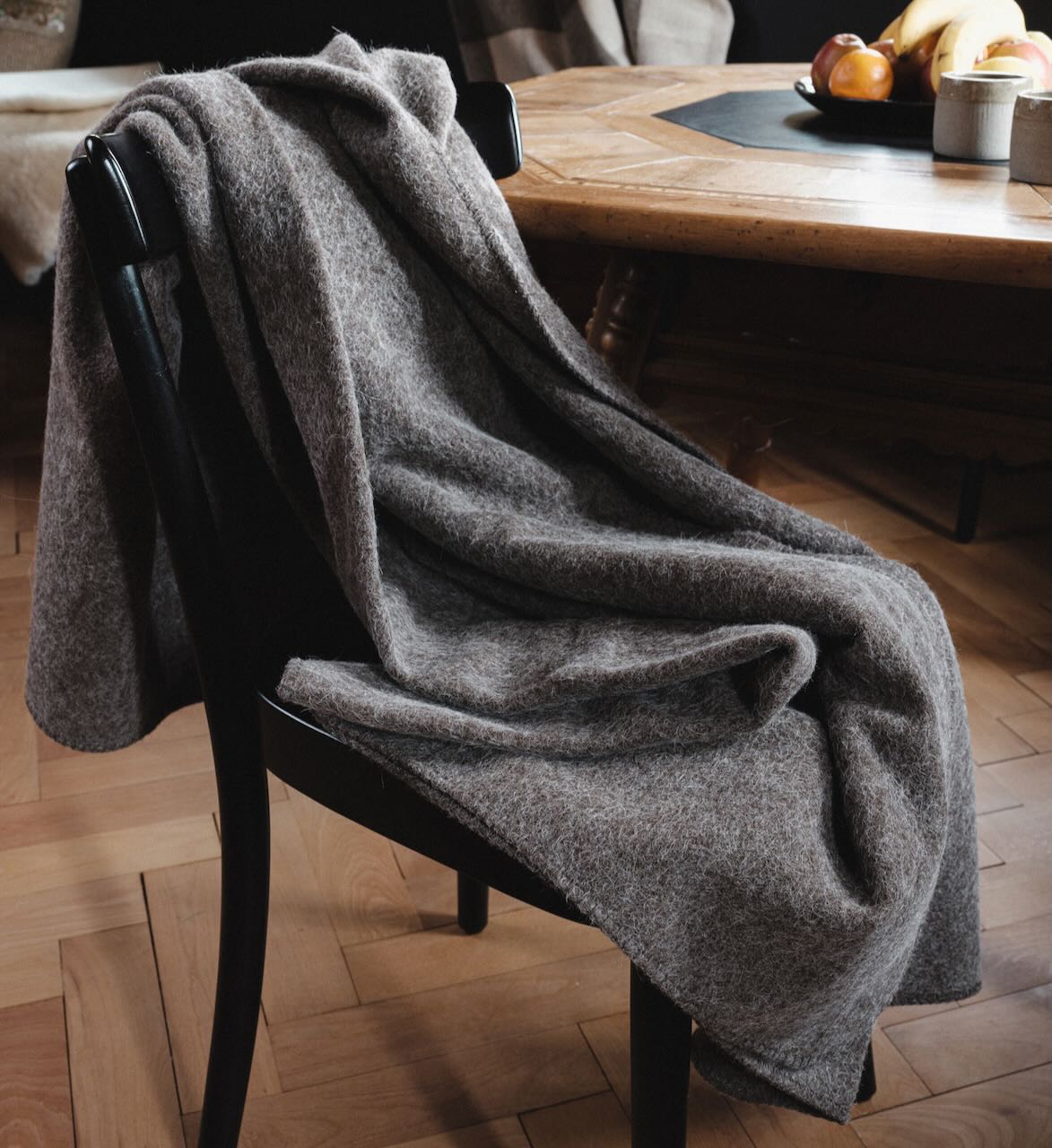 Die hochwertige Decke Nora von Steiner wird aus ungefärbter Wolle, je zur Hälfte aus Merino und Alpaka gewebt. Durch die Alpakawolle ist diese schöne Decke leicht glänzend und erhält einen ausgesprochen weichen Griff. Durch die Merinowolle mit ihrer starken Kräuselung der Haare ist die edle Decke weich und anschmiegsam. Durch die Kombination aus den glatten langen Alpaka-Haaren mit der stark gekräuselten Merino-Wolle wirkt die Farbe der Decke brillant und sehr lebendig. Als besonderes Detail wird die edle Decke Nora mit einer Kettelnaht aus naturfarbenem Garn eingefasst, die sich schön vom Farbton der Decke abhebt.