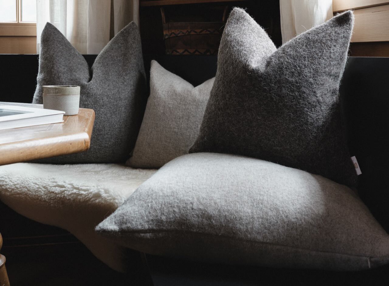 Das hochwertige Kissen Nora von Steiner wird aus ungefärbter Wolle, zur Hälfte vom Merinoschaf und zur anderen Hälfte aus Alpakawolle gewebt. Durch die Alpaka-Wolle ist das schöne Kissen leicht glänzend und erhält einen schönen weichen Griff. Die Merinowolle sorgt durch die starke Kräuselung der Haare dafür, dass das edle Kissen sich sehr weich und sehr anschmiegsam anfühlt. Durch die Kombination aus den glatten langen Alpaka-Haaren mit der stark gekräuselten Merino-Wolle wirkt die Farbe des Kissens sehr lebendig und brillant. Durch den Reißverschluss lässt sich das edle Kissen bequem schließen. Das Kissen ist in zwei Größen erhältlich und wird mit passendem Inlett geliefert.