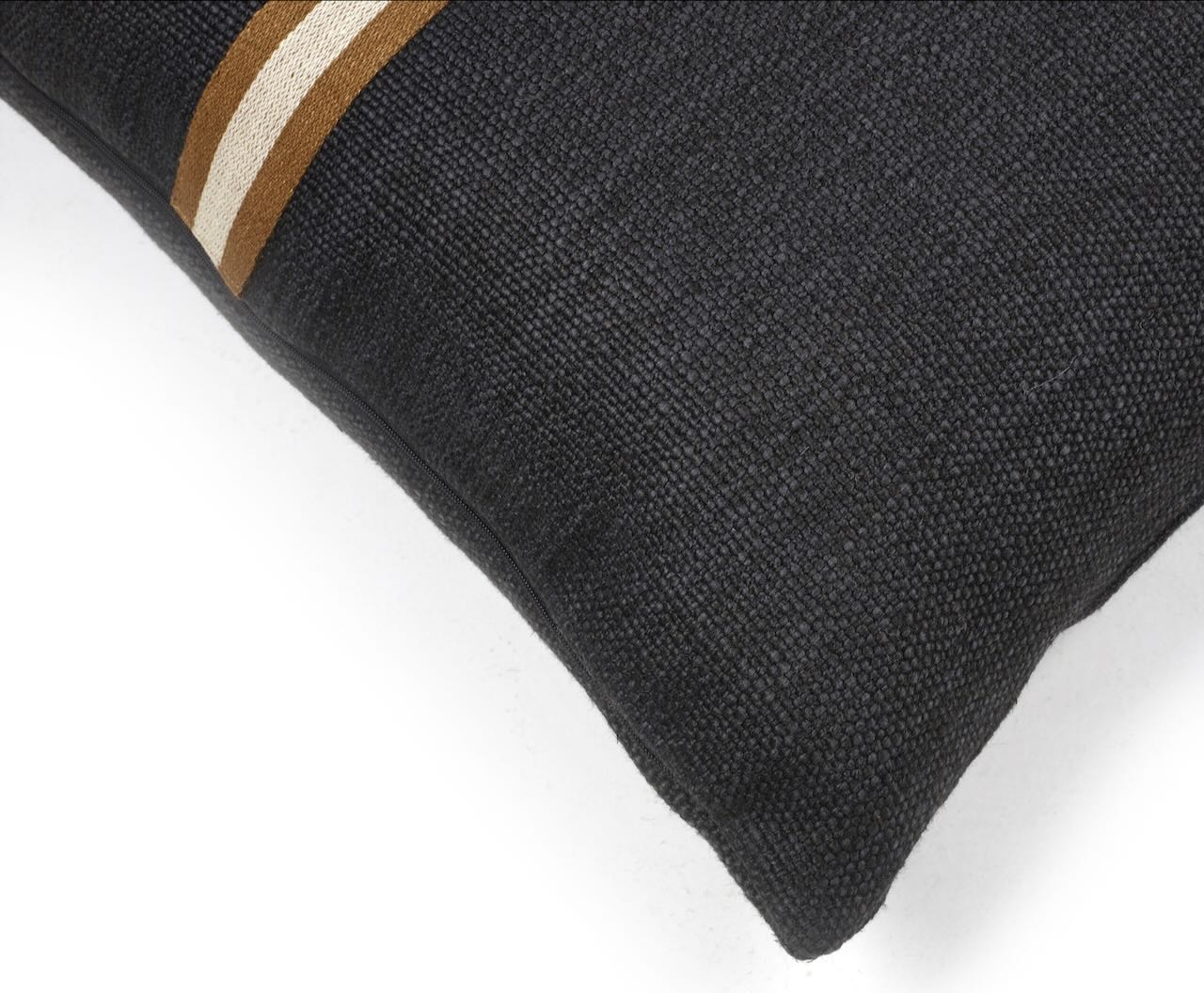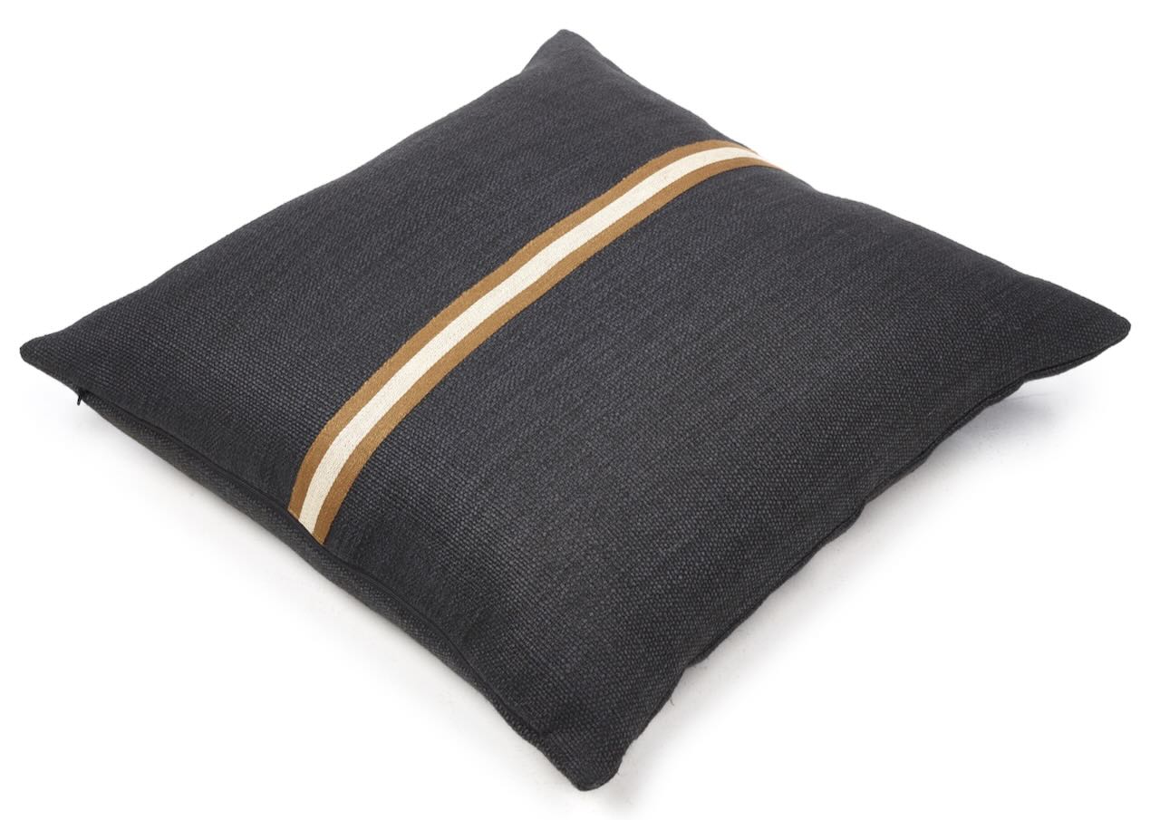 Dieses schöne Kissen von Libeco ist von edel lässiger Eleganz. Der hochwertige Kissenbezug hat einen anthrazitfarbenen Grundton und auf der Vorderseite eine braun-naturfarbene Leinenbordüre mittig aufgesetzt, wodurch der tolle Kissenbezug eine besonders edle Note erhält. Das dekorative Kissen von Libeco wird aus einer weichen Leinen-Wollmischung gewebt und hat einen leicht schimmernden Glanz und ist angenehm weich und anschmiegsam. Der Reißverschluss ist dezent und unauffällig. Ein dekoratives edles Kissen für Bett und Sofa.