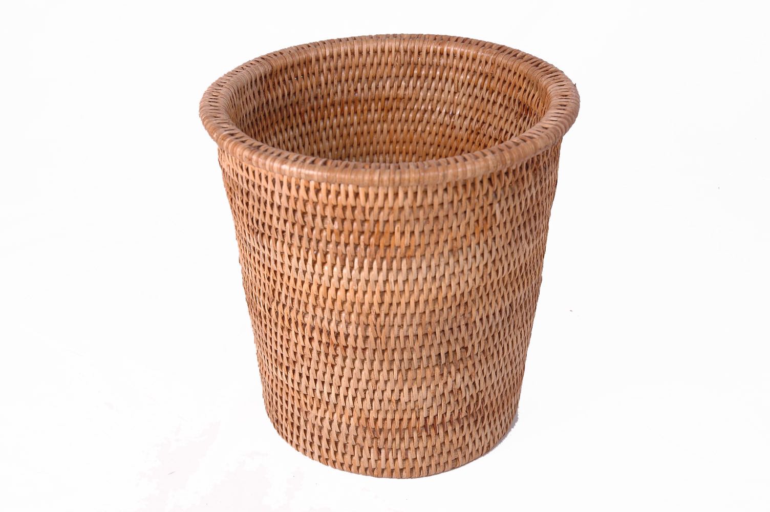 Dieser kleine runde Papierkorb aus hochwertigem Rattan ist robust und dekorativ zugleich. In aufwendiger Handarbeit hochwertig verarbeitet ist der dekorative Papierkorb zeitlos und schön, gleichzeitig funktional und strapazierbar. Durch seine wasserabweisende Lasur lässt sich der hochwertige Papierkorb gut reinigen und ist praktisch überall einsetzbar. Er eignet sich für den Wohnraum genauso wie für Küche oder Bad und verleiht dem Zuhause eine warme persönliche Note. In warmem Naturton setzt er die richtigen Akzente.