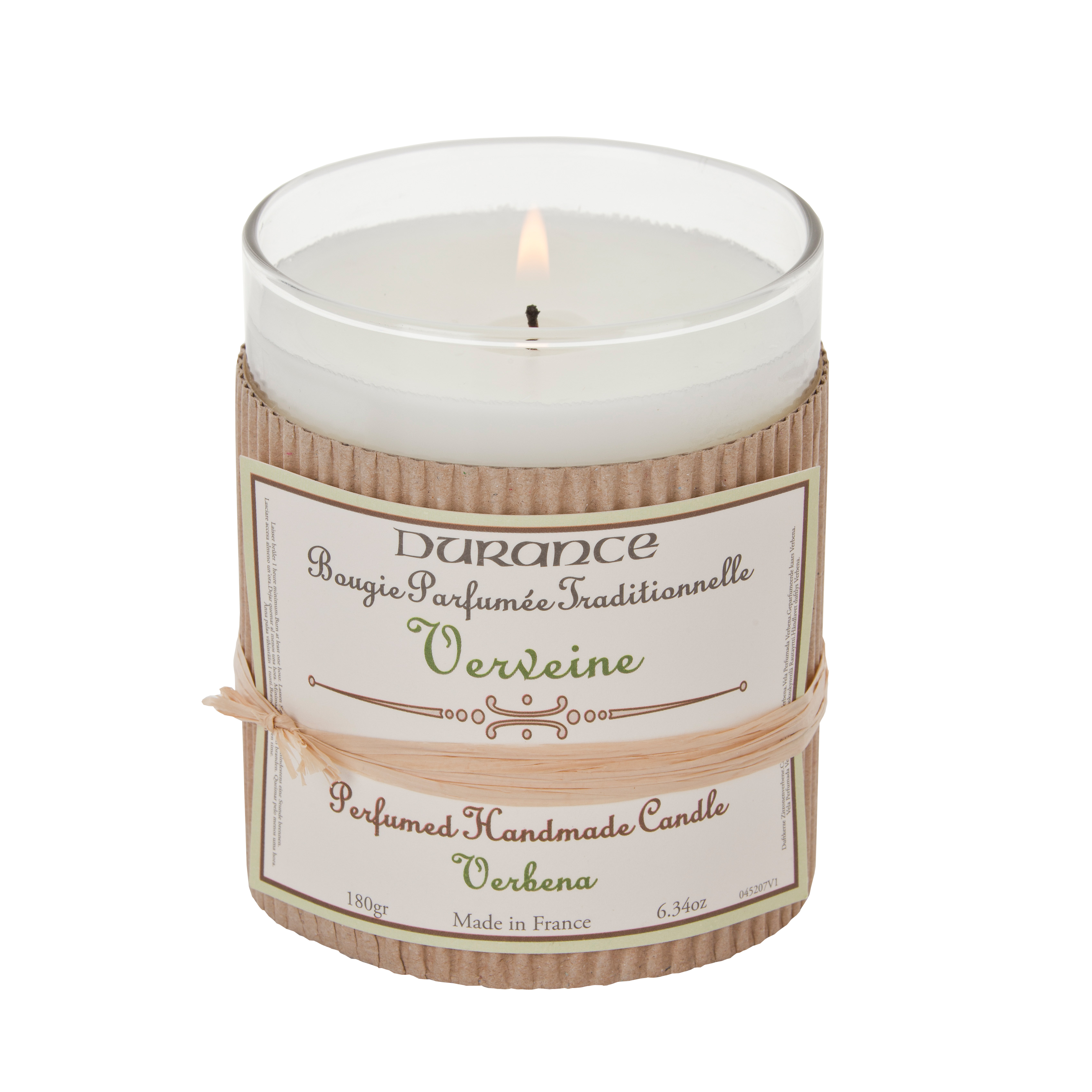 Die edle Duftkerze Verbene von Durance beduftet den Raum mit zitronigen Noten und belebt Körper und Geist durch ihren frischen und ausgleichenden Duft, daher auch gern verwendet als Wäscheduft. Durch die hochwertige Wachsmischung verströmt die handgefertigte Duftkerze das edle Raumparfüm wohldosiert in der Luft. Während einer Brenndauer von ca. 40 Stunden wird der frische Duft sanft verteilt und verbleibt auch nach dem Löschen der hochwertigen Kerze noch eine Zeit lang im Raum.